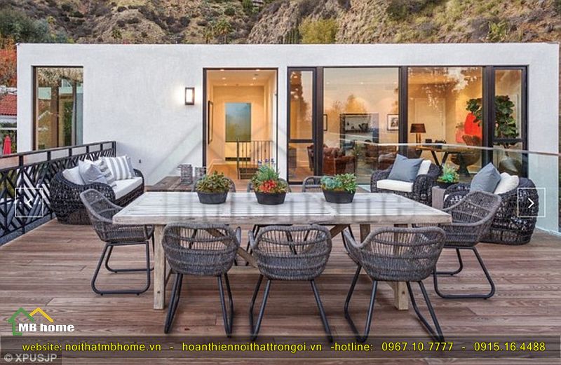 Với những gia đình có không gian rộng rãi, đông người, thích được hoà mình vào với thiên nhiên thì chắc hẳn mọi người sẽ luôn thích những những vị trí mở, thoáng mát. Vậy thì chắc chắn quý khách hàng không thể bỏ qua được không gian bàn ăn ngoài trời có một không hai dưới đây của MB home chúng tôi.
