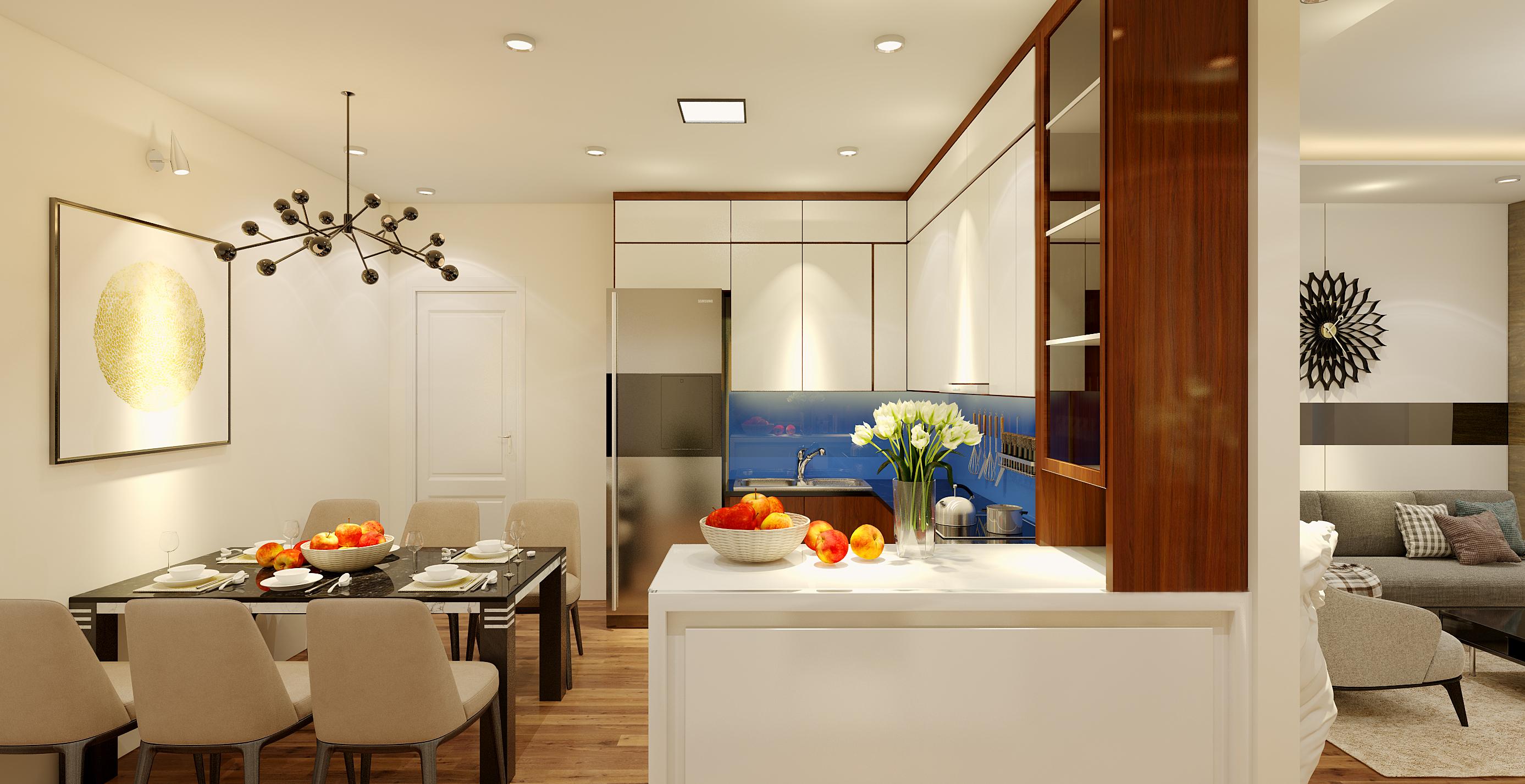 Tổng thể không gian chung cư đi theo phong cách cổ điển pha trộn hài hòa với hiện đại. Do đó, bàn ăn cũng có thiết kế đặc biệt hơn.