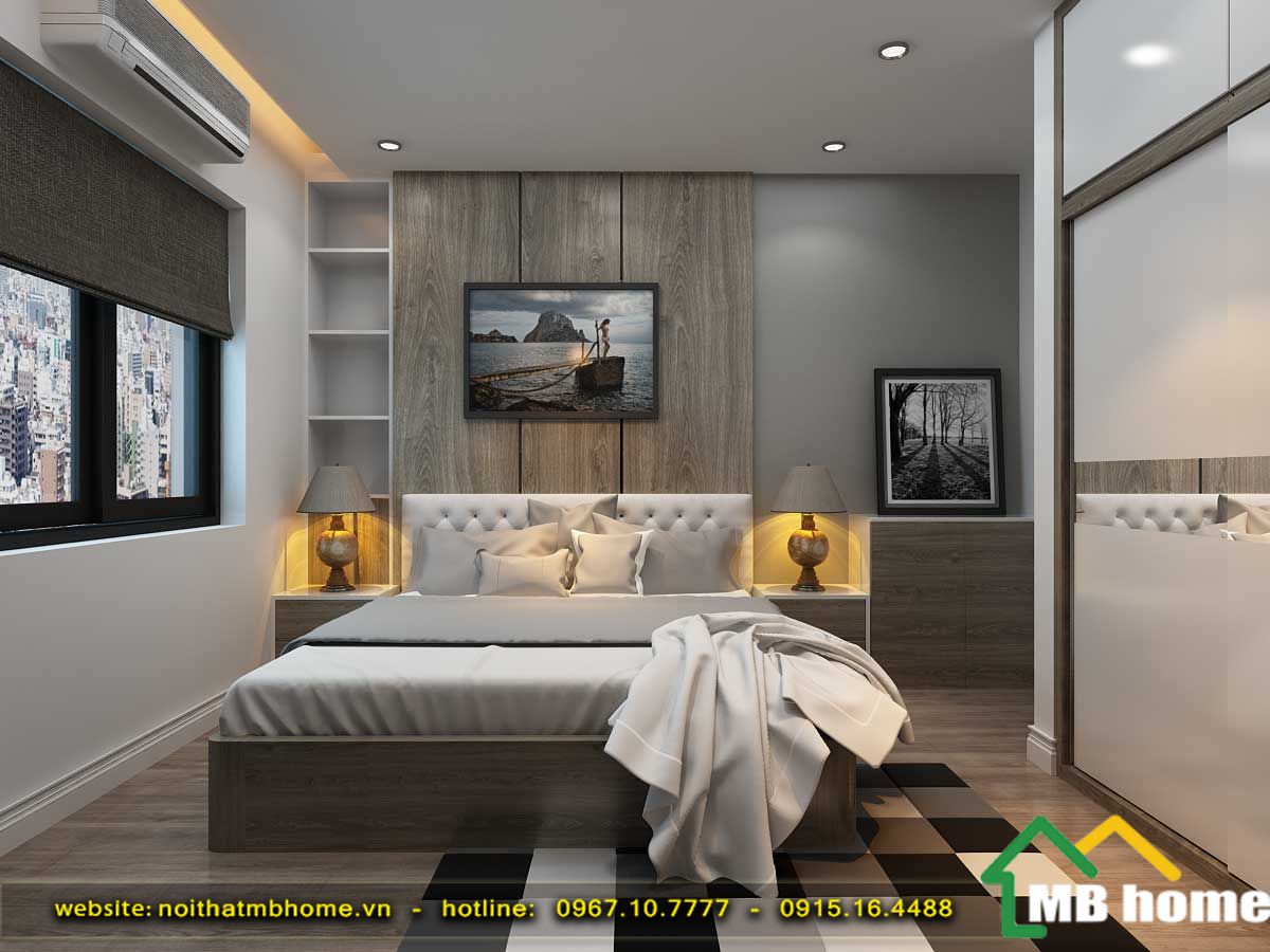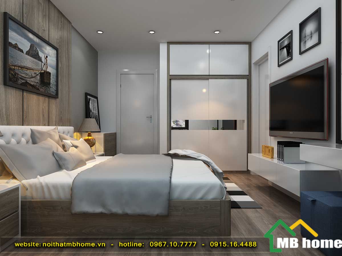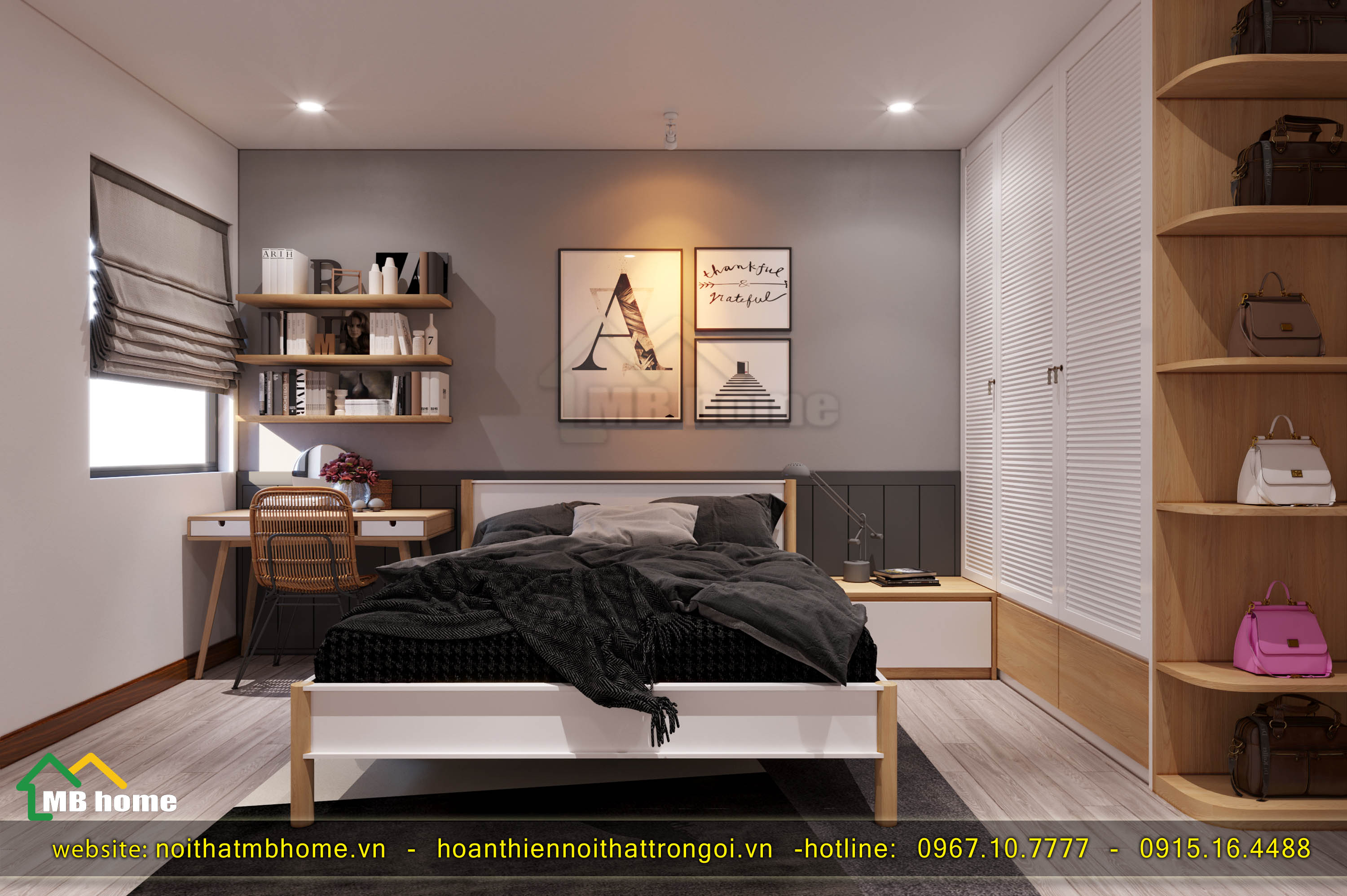 Bên cạnh những gam màu trầm, nội thất phòng ngủ này vẫn xen kẽ gam màu trắng, tăng thêm sự trang nhã và sáng sủa cho không gian. Với kiểu thiết kế phòng ngủ này, MB Home đảm bảo cả nam và nữ đều sẽ rất ưa chuộng.