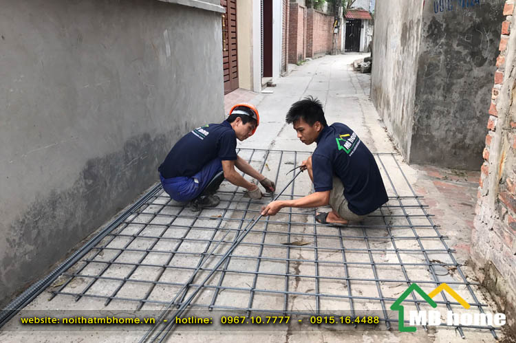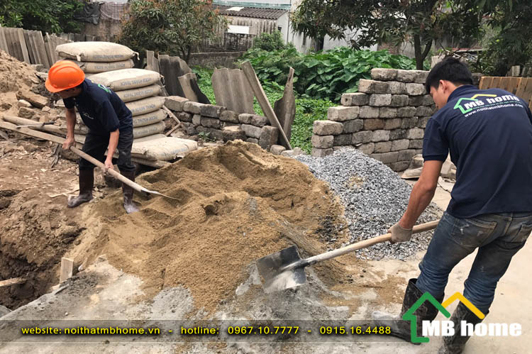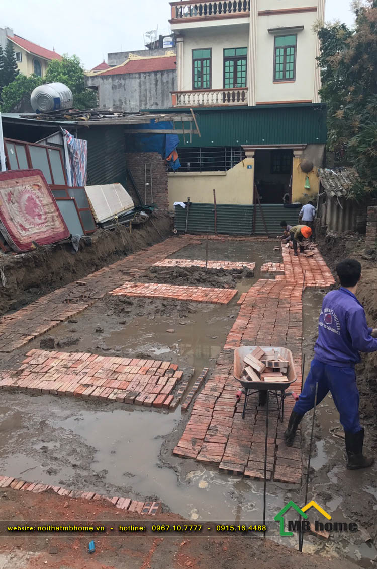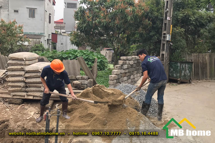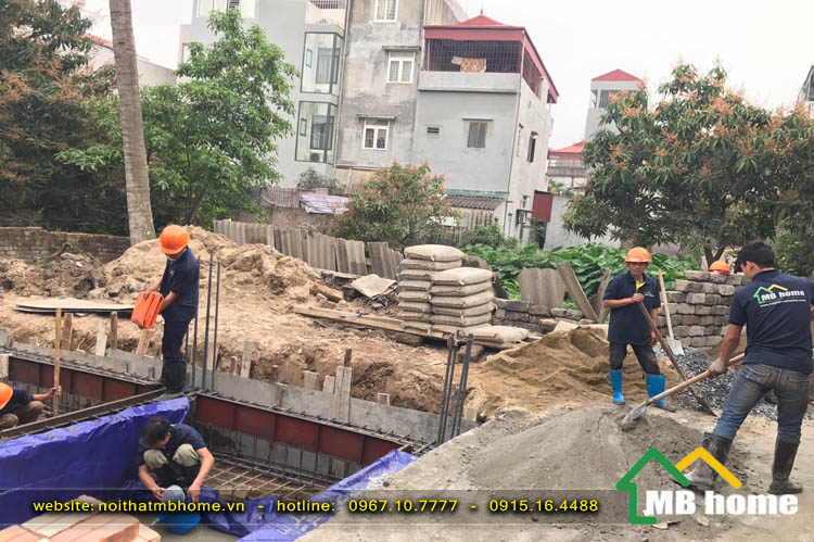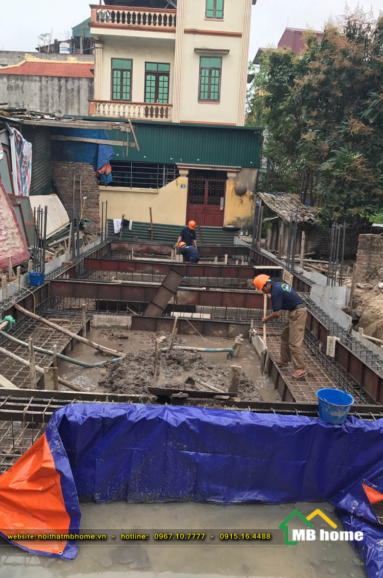 Công tác đổ móng cho ngôi nhà 3 tầng tại Long Biên được đội ngũ thợ lành nghề giầu kinh nghiệm của MBhome thi công xây dựng một cách bài bản và chuyên nghiệp.
