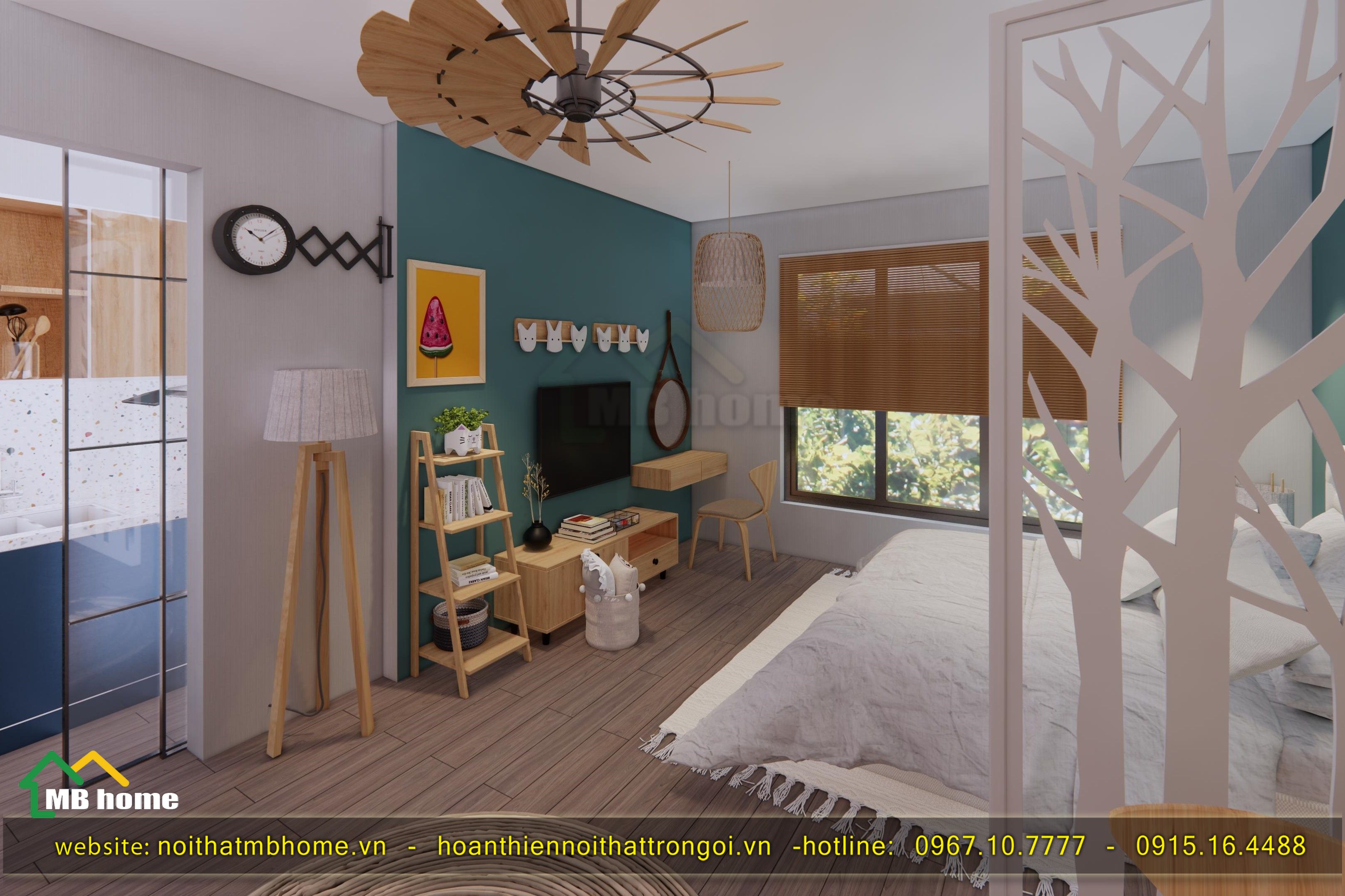 Hiểu được rằng khách hàng mong muốn cho không gian thoải mái và dễ chịu, đội thi công nội thất chung cư mini của MB Home quyết định đặt phòng ngủ cách xa phòng vệ sinh để tránh mùi và phù hợp với phong thủy,...