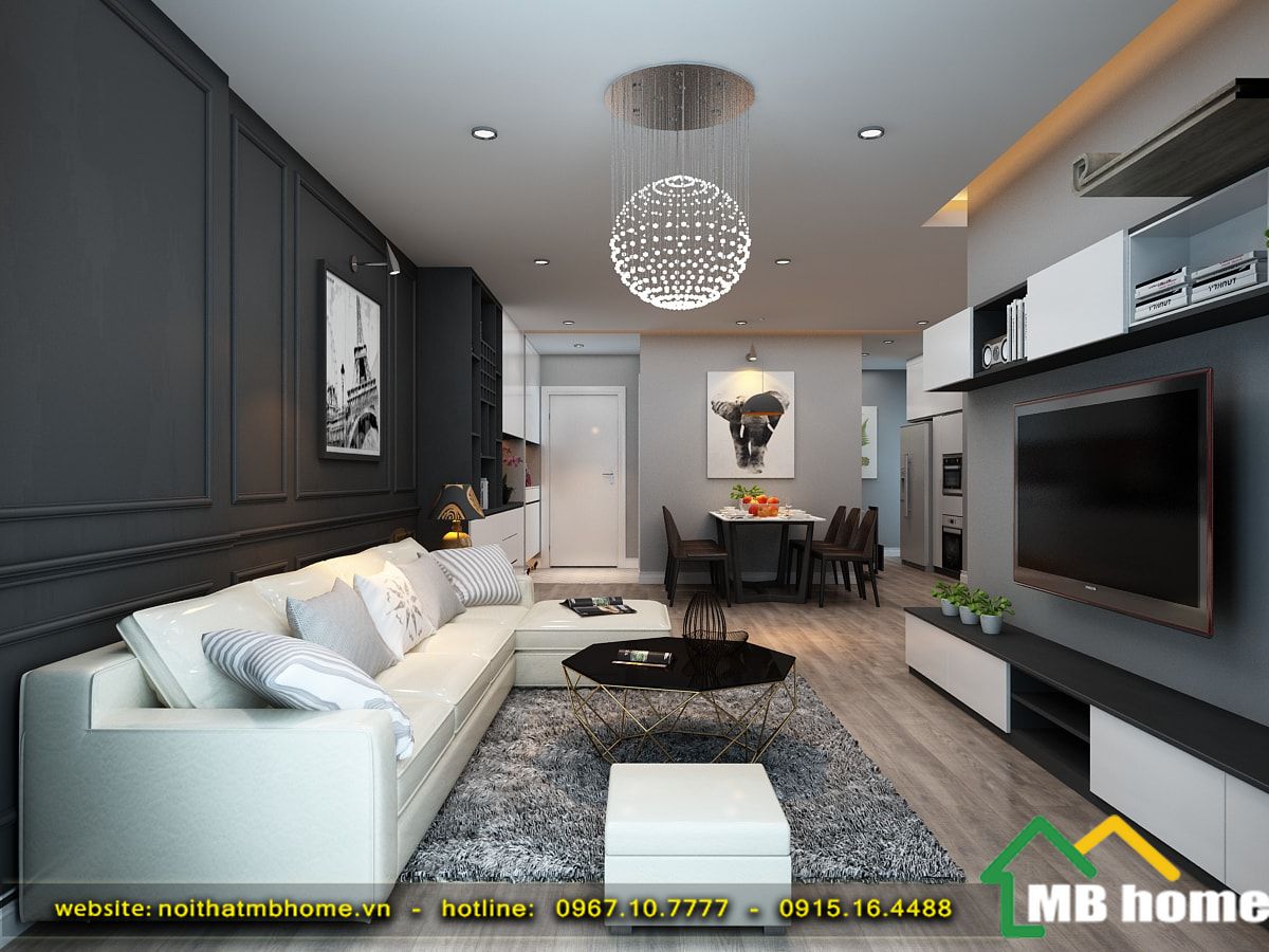 Hãy cùng MBhome ngắm nhìn không gian thiết kế nội thất phòng khách và bếp chung cư của nhà chị Trang Vy nhé.
