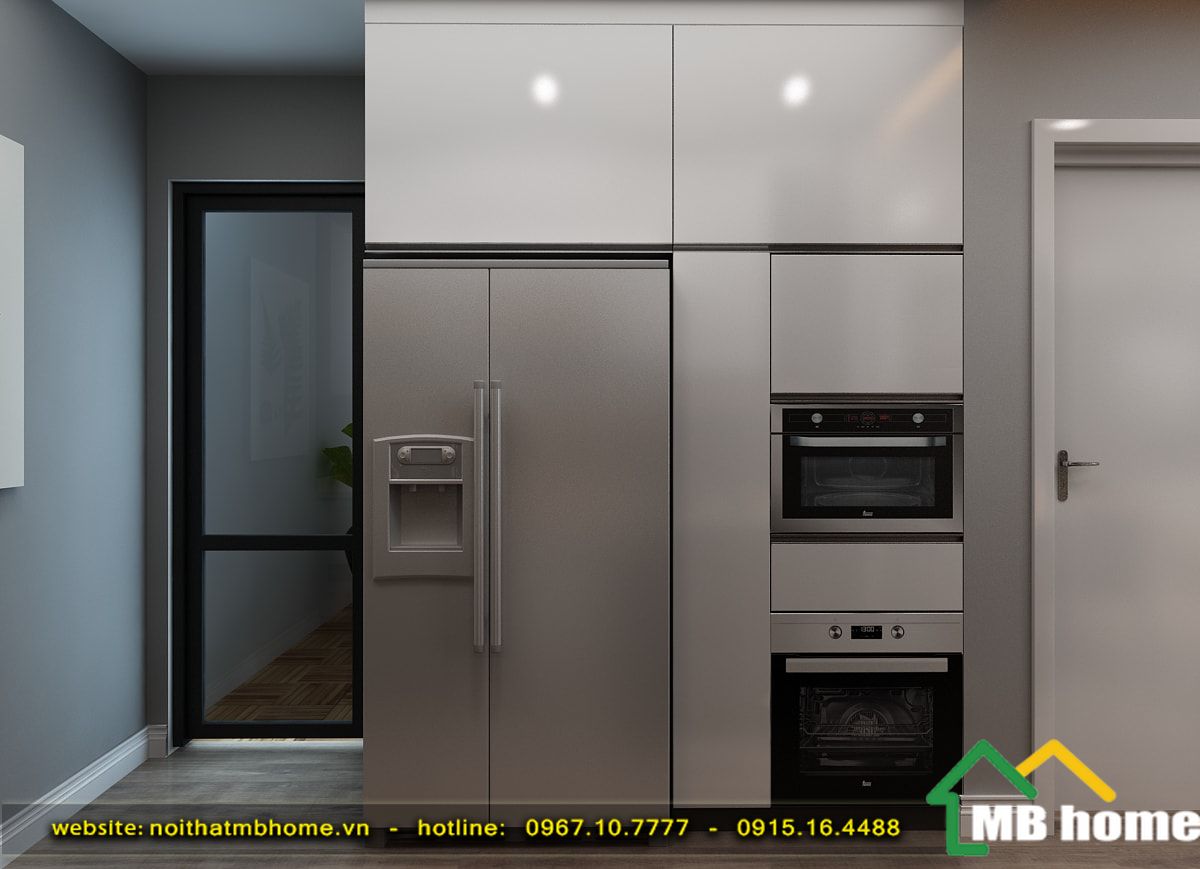 Nơi để tủ lạnh và lò vi sóng ... thiết kế chìm tiết kiếm tối đa diện tích bếp