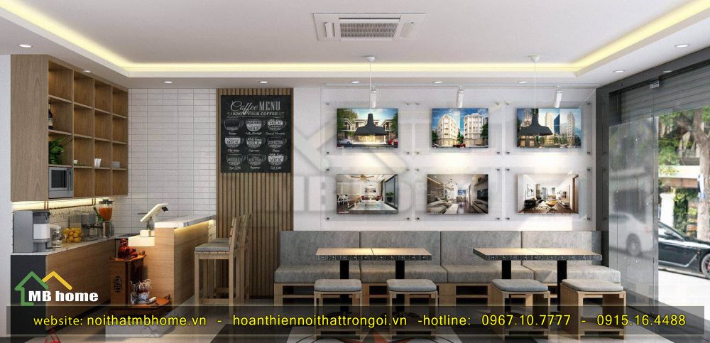 Đây chỉ là một trong các mẫu thiết kế nội thất quán cafe đơn giản nhưng vẫn giữ được nét sáng sủa, hiện đại và ấn tượng. Cũng có thể đây là các mẫu tham khảo để quán của bạn sẽ có thêm điều gợi ý quan trọng. Ngoài ra các bạn yêu thích hay muốn không gian quán mình trở nên đẹp và độc đáo thì không thể bỏ qua MB Home được. Chúng tôi chuyên cung cấp các dịch vụ thiết kế, thi công, cải tạo chung cư, cafe, biệt thự hay dự án thi công,..với vô vàn các thành quả đã nhận lại chúng tôi tin rằng sẽ không khiến cho các bạn thất vọng đâu. Mà còn làm bạn trầm trồ, yêu thích thiết kế quán còn đẹp và sang hơn trong cả trí tượng tượng của bạn.