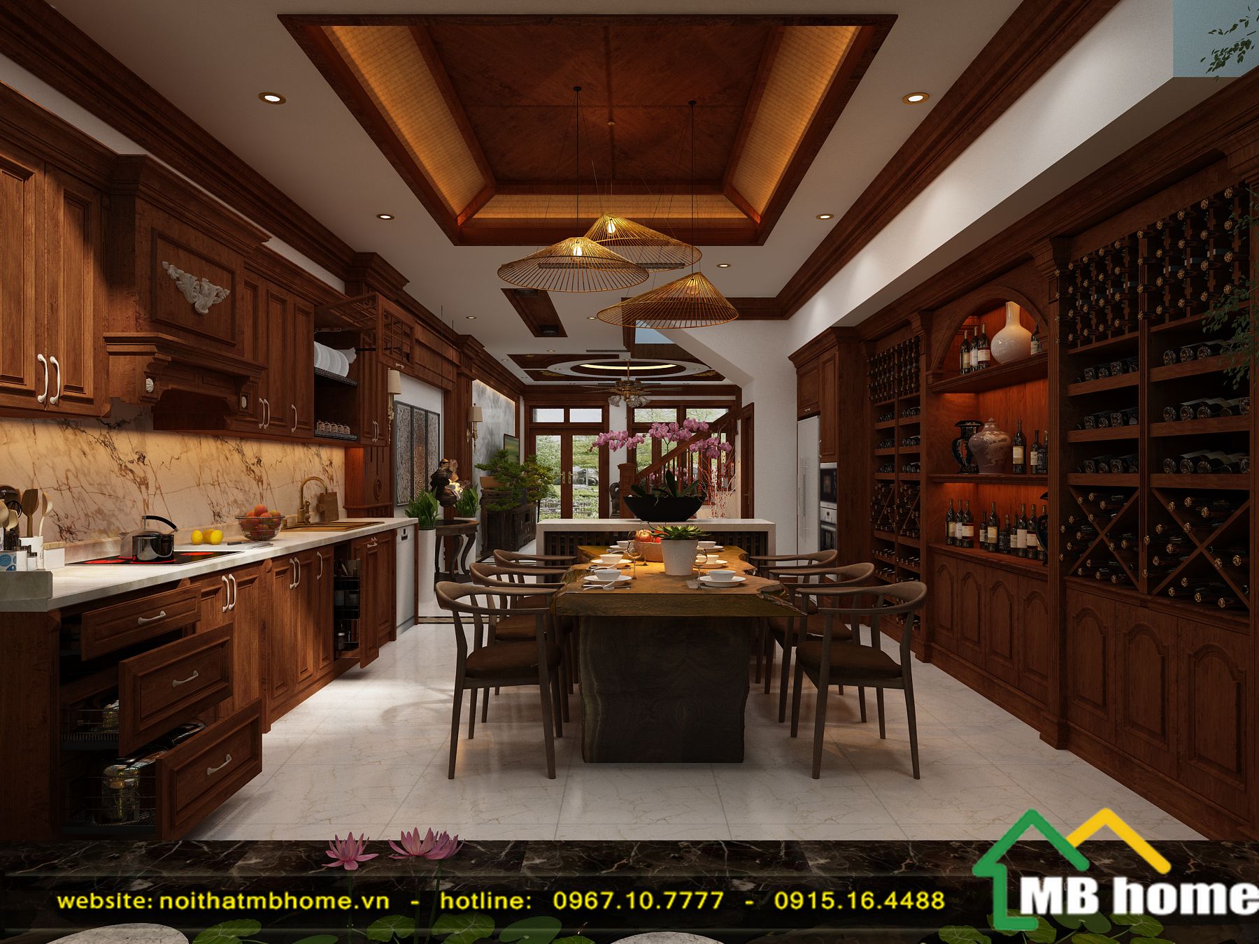 Vẫn là phong cách cổ điển chủ đạo nhưng Lấy ý tưởng từ phương tây nhiều hơn, căn bếp với tủ rượu và phần tiểu cảnh cực kỳ ấn tượng