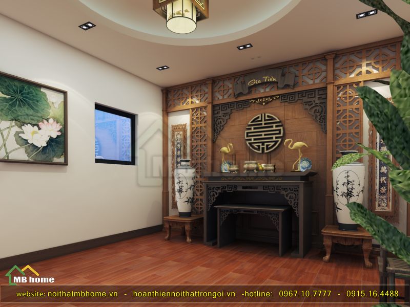 Phòng thờ là nơi linh thiêng, nơi gia chủ thờ cúng tổ tiên và tĩnh tâm. Vì thế MB Home ưu tiên sử dụng nội thất cổ kính.