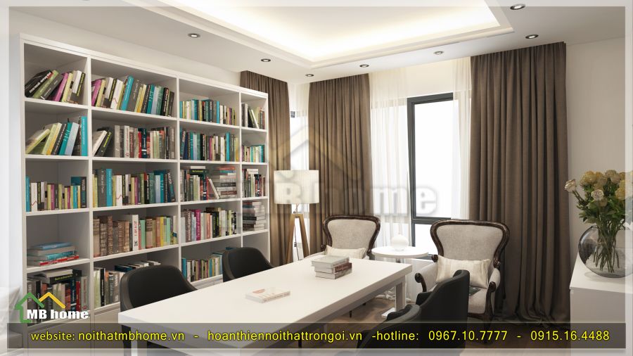 Một không gian chung nữa cho việc học tập và làm việc của cả gia đình nên MB Home ưu tiên với những thiết kế gọn gàng, đơn giản mà lại khoa học.