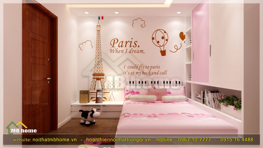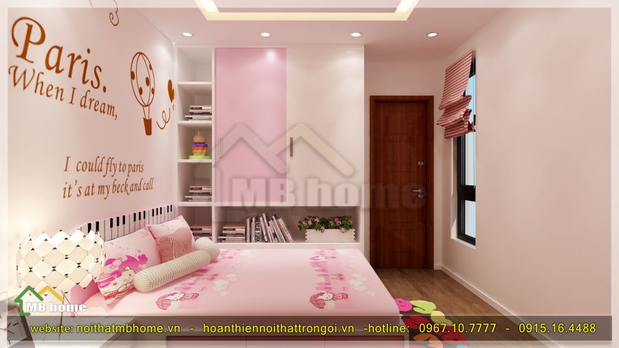 Có lẽ bé gái nào cũng sẽ đặc biệt thích có một căn phòng riêng của mình toàn màu hồng. Vì hiểu tâm lý của các bé, MB Home đã thiết kế nên một căn phòng có thể đáp ứng đúng theo nhu cầu và sở thích của các bé.
